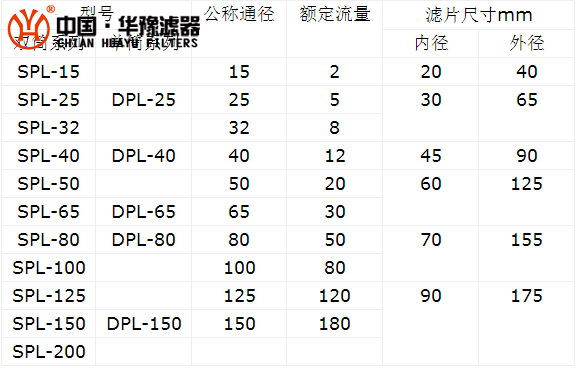 SPL-15C 配套濾片尺寸(20mm×40mm) 流量:2m3/h SPL-25C 配套濾片尺寸(30mm×65mm) 流量:5m3/h SPL-32C 配套濾片尺寸(30mm×65mm) 流量:8m3/h SPL-40C 配套濾片尺寸(45mm×90mm) 流量:12m3/h SPL-50X 配套濾片尺寸(60mm×125mm) 流量: 20m3/h SPL-65X 配套濾片尺寸(60mm×125mm) 流量:30m3/h SPL-80X 配套濾片尺寸(70mm×155mm) 流量:50m3/h SPL-100X 配套濾片尺寸(70mm×155mm) 流量:80m3/h SPL-125X 配套濾片尺寸(90mm×175mm) 流量:120m3/h SPL-150X 配套濾片尺寸(90mm×175mm) 流量:180m3/h SPL-200X 配套濾片尺寸(90mm×175mm) 流量:320m3/h 單筒網片式油濾器型號: DPL-25C 配套濾片尺寸(30mm×65mm) 流量:5m3/h DPL-32C 配套濾片尺寸(30mm×65mm) 流量:8m3/h DPL-40C 配套濾片尺寸(45mm×90mm) 流量:12m3/h DPL-50X 配套濾片尺寸(60mm×125mm) 流量:20m3/h DPL-65X 配套濾片尺寸(60mm×125mm) 流量:30m3/h DPL-80X 配套濾片尺寸(70mm×155mm) 流量:50m3/h DPL-100X 配套濾片尺寸(70mm×155mm) 流量:80m3/h DPL-150X 配套濾片尺寸(90mm×175mm) 流量:120m3/h DPL-125X 配套濾片尺寸(90mm×175mm) 流量:180m3/h DPL-200X 配套濾片尺寸(90mm×175mm) 流量:320m3/h 工作溫度:≤95℃ 工作壓力:≤0.8MPa 清洗壓降:≤0.15MPa 過濾精度:60目、80目、118目、202目、363目、500目、800目、1200目 本過濾器含有配套濾芯,過濾效率高,使用效果好,歡迎咨詢!